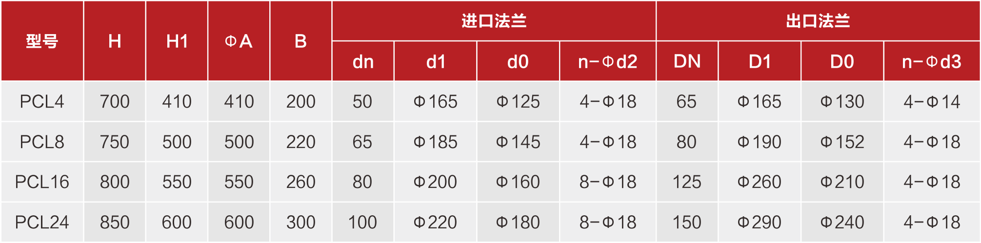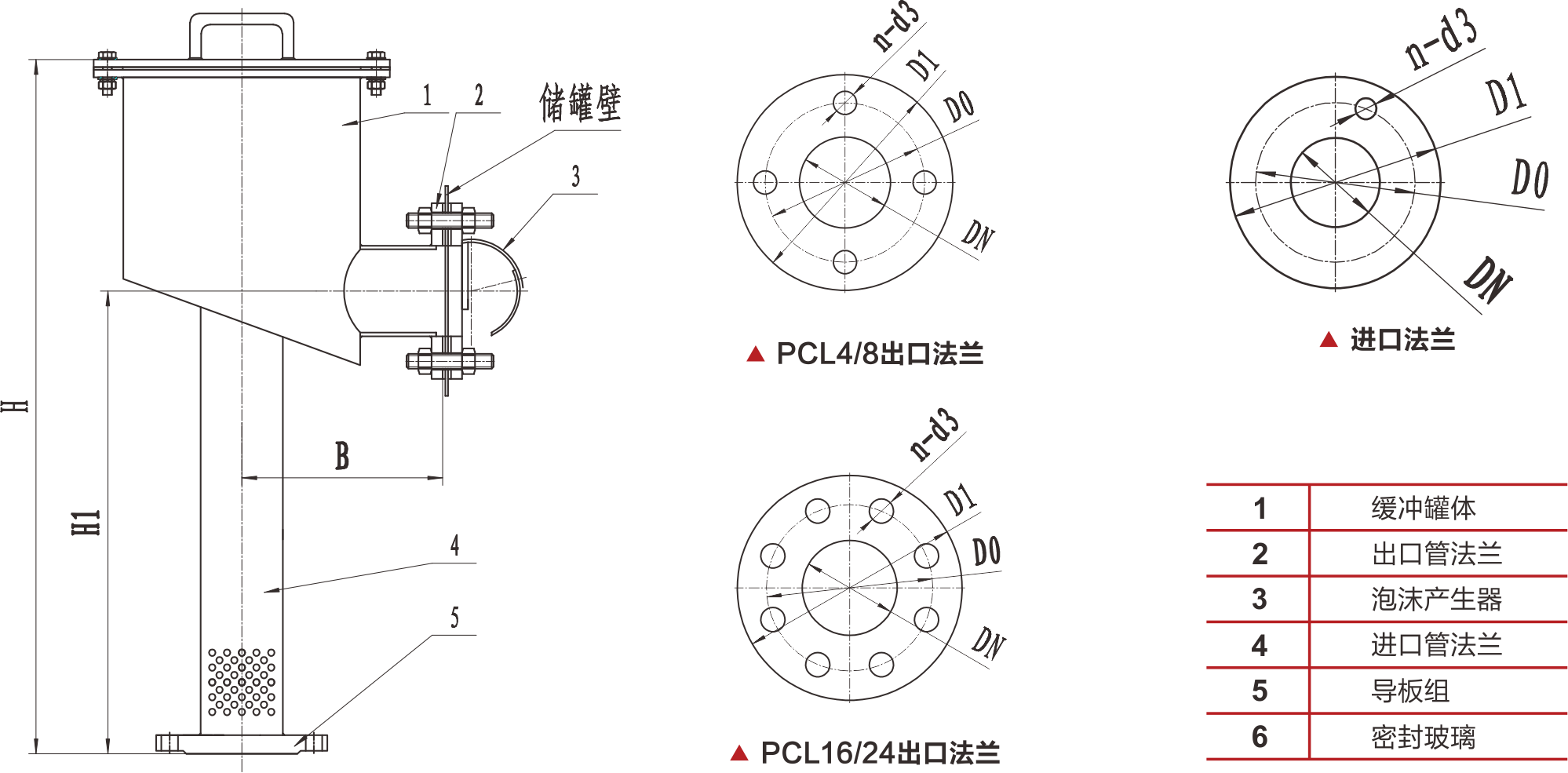 PCL系列低倍立式泡沫产生器外形尺寸表